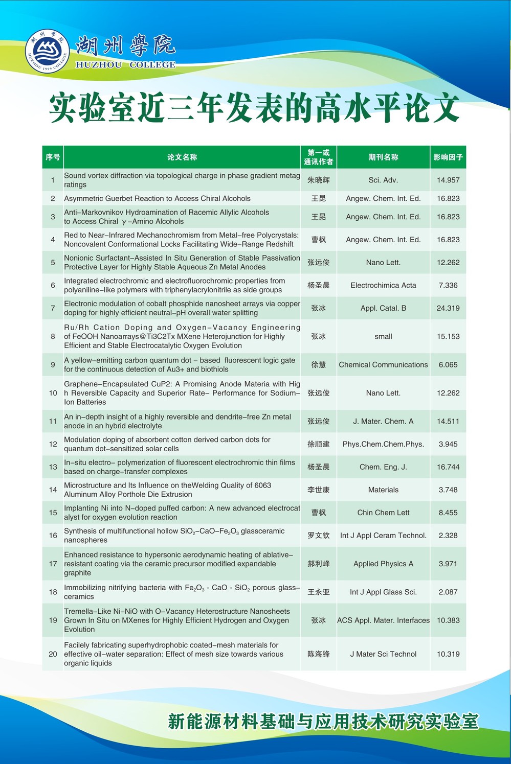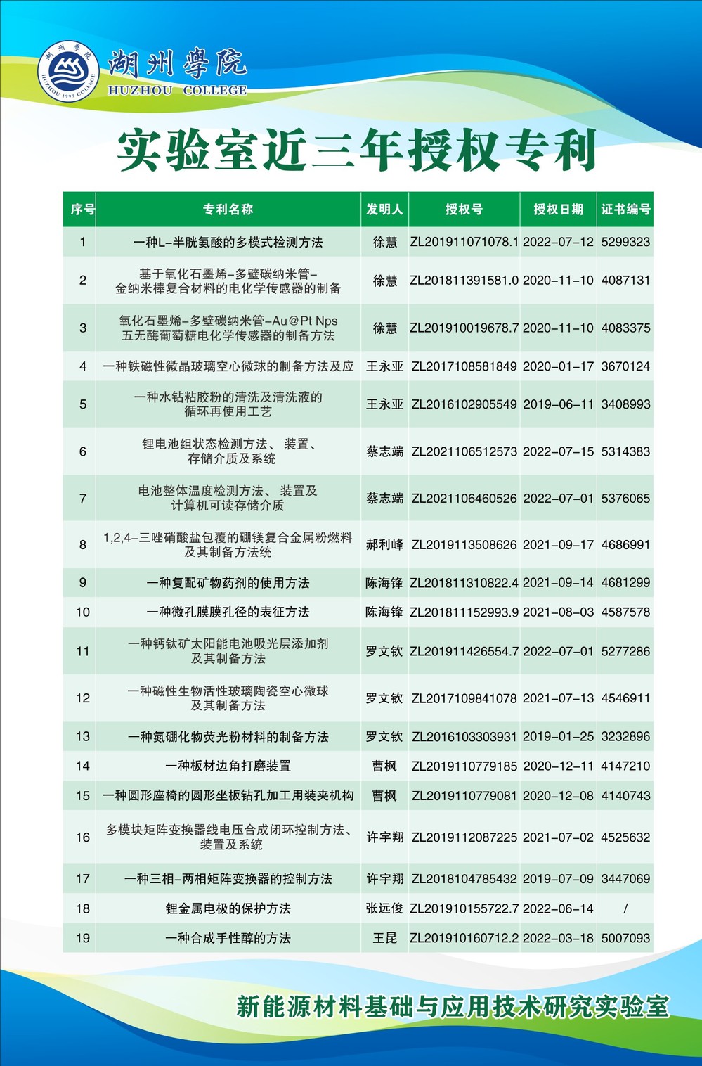 湖州市绿色能源材料与电池梯次利用重点实验室